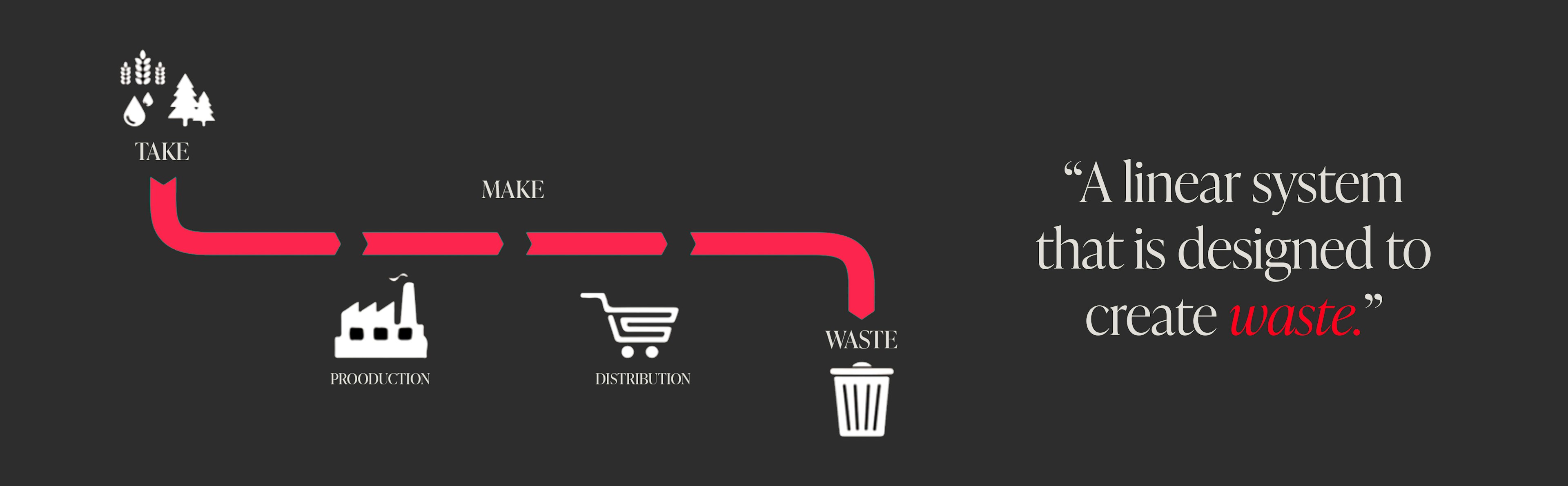 The traditional linear economic system means that we buy, consume and dispose of. Take, make, waste, as it’s called. With the best will in the world even producing using sustainable materials does not make enough of a difference to truly combat the problem. What we need to build is a system similar to that embraced by nature. A circular system where waste is reused where energy and resources can be utilised repeatedly and efficiently.